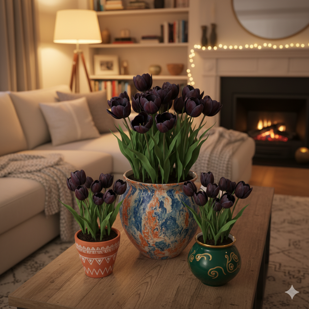 Тюльпан Queen of Night ідеально підходить для вирощування у горщиках та декоративних кімнатних композиціях.